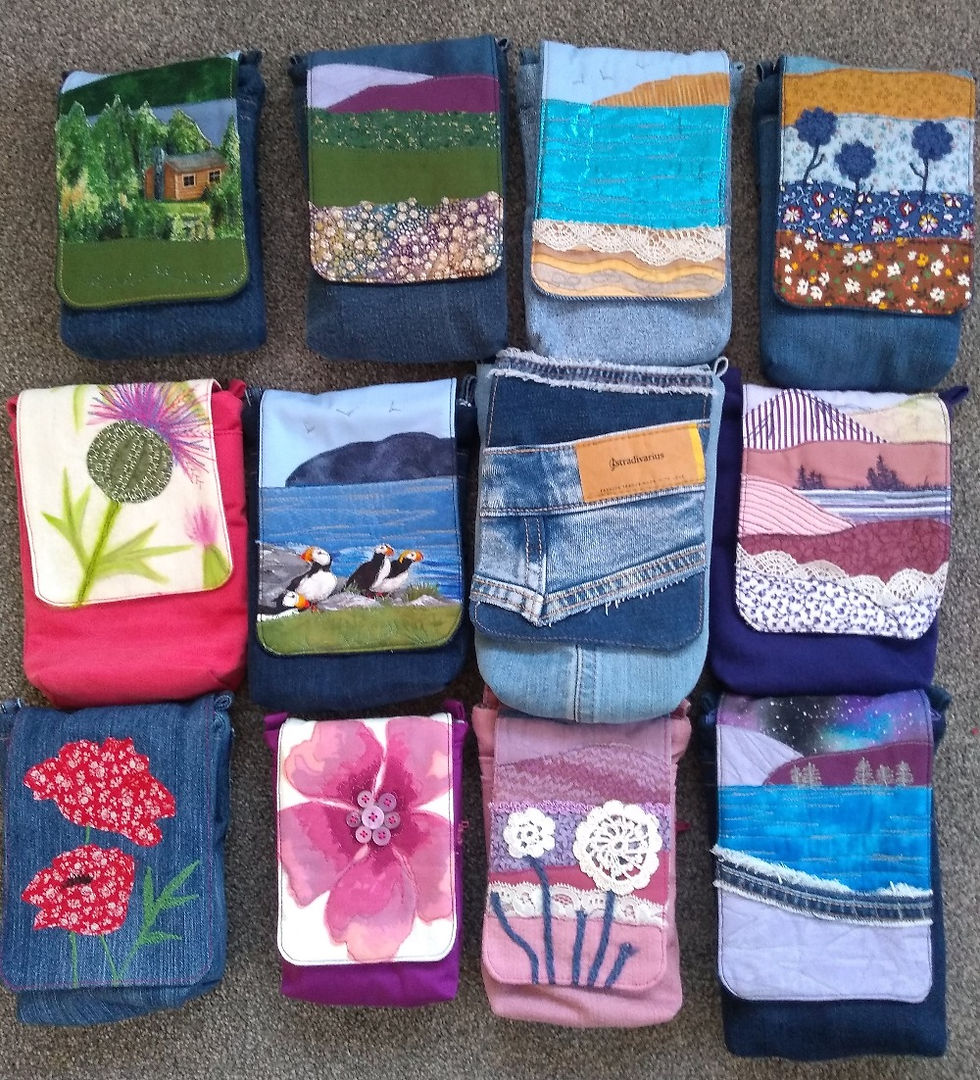 into one-of-a-kind bags. These are based mostly on denim and feature as much of the original garments as